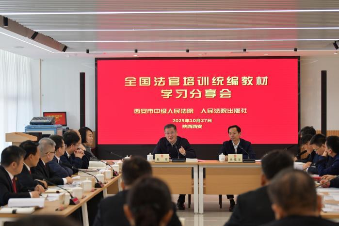 10月27日,最高人民法院、人民法院出版社与西安中院首次举办全国法官培训统编教材学习分享会,这也是在全国举行的首站学习分享会。最高人民法院刑事审判第一庭副庭长李加玺、刑事审判第三庭审判长王尚明,人民法院出版社党委书记、社长余茂玉,西安中院党组书记、院长赵雷出席分享会并讲话。
