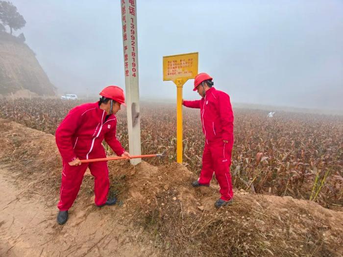 集气站的灯火尚未熄灭,山梁间的巡线路上已出现身影。“管线就像气田的‘大动脉’,低温天最怕冻堵,一刻都不能松懈。”巡线工郑海军和周建利拿着15公斤重的DM3检测仪,背着巡检包走在洒满寒意的山路上。巡线期间,他们扶正了歪斜的标识桩、擦掉了桩体上的泥污,检测了阴极保护系列数据。在一处管道裸露段,他们取出DM2检测仪贴在管壁做外防腐检测,盯着屏幕上跳动的数值,结合之前的阴极保护数据综合判断管线的完好性,确认无异常后才在记录册上打勾。“今天得把12公里管线巡完,还要整改3处隐患,时间紧、任务重啊。”郑海军搓了搓冻得发红的双手,与同事继续踏上巡检之路。休息间隙,他们还会拿出手机和宣传册给附近村民讲解管道保护知识,为管道安全运行加固一道防线。