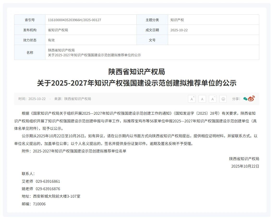 近日,陕西省知识产权局发布《2025-2027年知识产权强国建设示范创建拟推荐名单》,西安经开区企业陕西重型汽车有限公司、西部超导材料科技股份有限公司、西安大医集团股份有限公司、西安维塑智能科技有限公司、西安惠普生物科技有限公司、西安赛隆增材技术股份有限公司等多家企业入选2025-2027年国家知识产权示范企业拟推荐名单。这是经开区科技企业在知识产权创造、运用、保护与管理全链条工作的权威肯定,也是“经开智造”核心竞争力持续提升的生动写照。