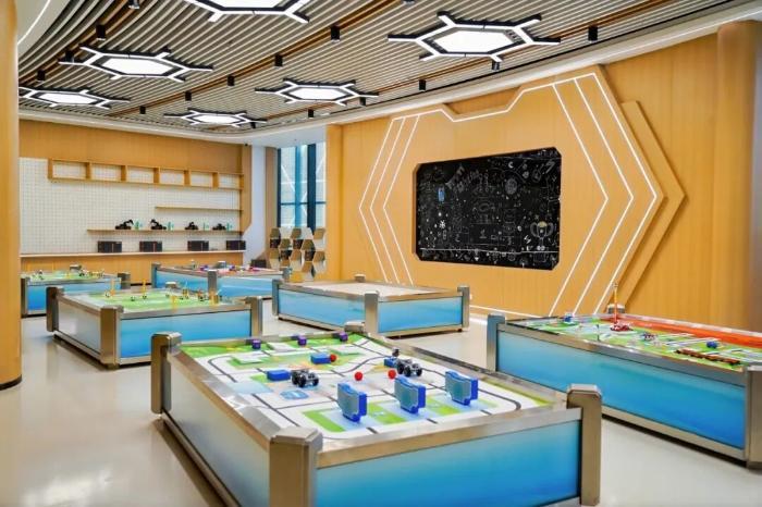该基地自即日起面向社会公众开放,共设有14间人工智能教室和多个XR、AI交互体验厅,配备机器人、无人机等教学设备500多套,拥有专任教师50余名,可为1-12年级学生提供系统化的人工智能通识教学。基地课程采用教育部认定的人工智能课程体系,针对不同学段学生特点开展分层教学:小学阶段注重生活化场景与游戏化活动,激发AI兴趣;初中阶段推行PBL项目式教学,融合科学、技术、工程与数学知识;高中阶段聚焦项目创作与前沿技术应用,涵盖Python AI编程、AIGC工具使用等内容。