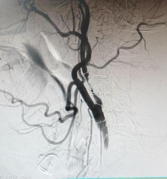 根据症状表现,急诊团队迅速启动卒中救治绿色通道,经快速评估并结合头颅CT、CTA检查,明确诊断王刚为“急性脑梗死”,且存在颈内动脉起始段急性闭塞狭窄,狭窄率高达96%。急诊团队立即联系神经外科卒中团队,并同步完成术前准备与静脉溶栓,争取为后续手术赢得宝贵的“时间窗”。