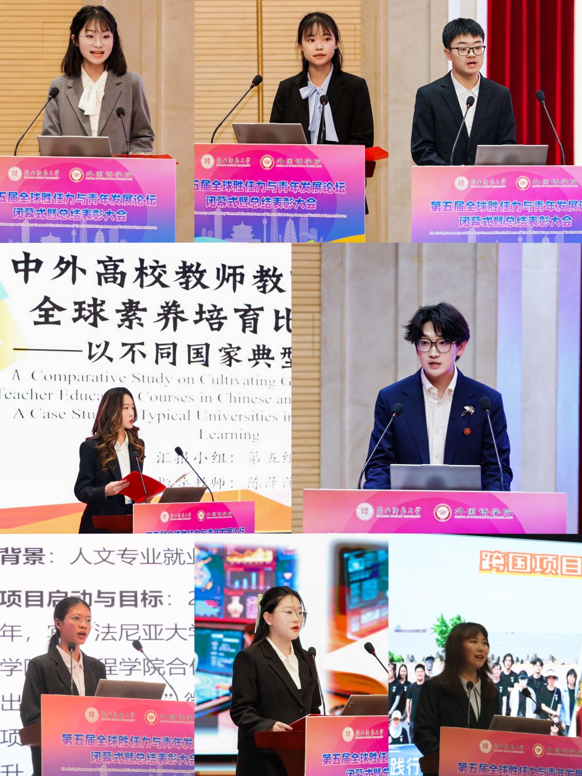 全球胜任力工作坊各组开展全球热点议题汇报展示。六个小组代表分别就《全球化背景下中国青年价值观培育路径研究——基于文明交流互鉴视角》《元宇宙场景下的全球协作教育实践案例分析》《全球胜任力培养与青年ESG素养提升的协同路径研究》《顶尖大学裁撤文科背景下文科生在AI时代生存路径研究》《中外高校教师教育课程中全球素养培育比较研究》《增进文化认同 讲好中国故事——基于陕西师范大学来华留学生跨文化适应问题研究》等议题展开汇报,六位指导教师逐一进行点评。