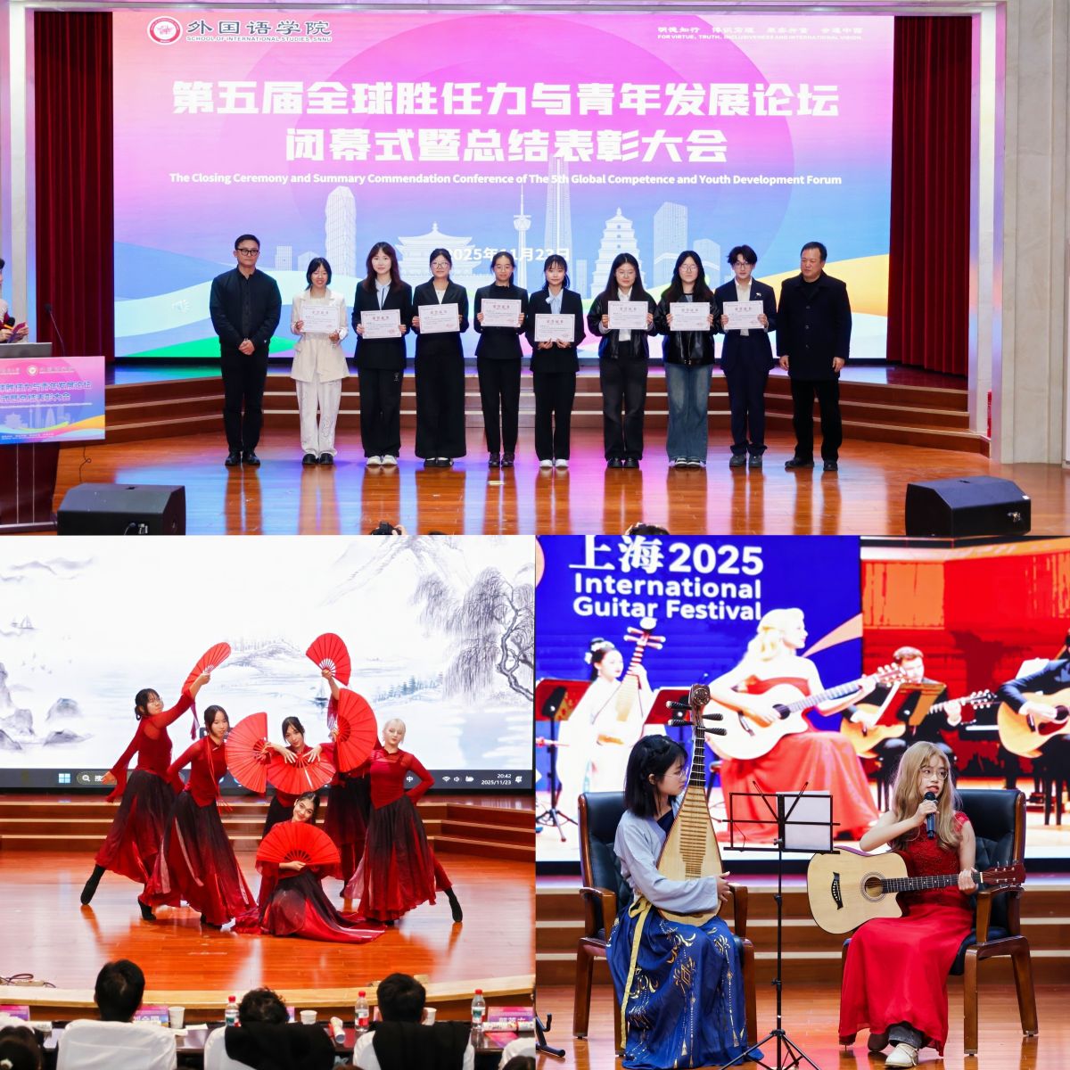 现场还举行了工作坊优秀学员颁奖仪式。学员代表在发言中分享了收获与启迪,中外学生带来了精彩纷呈的节目展演。