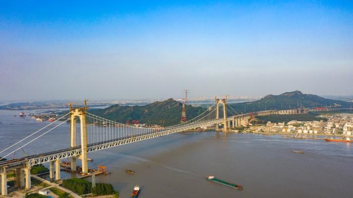 五峰山长江大桥是连淮扬镇铁路和京沪高速南延的关键节点工程,是我国首座公铁两用悬索桥,也是世界上运行速度最快、运行荷载最大、跨度最大的公铁两用悬索桥,全长1428米,扬州公司承建共计约3.7万吨钢结构。大桥的建成,填补了世界高速铁路悬索桥、中国公铁两用悬索桥和中国铁路悬索桥三项空白,并在国际范围率先建立起中国高速铁路悬索桥的设计方法、计算理论和相关技术标准,对构建苏北快速铁路网,推动苏中苏南融合发展有着重要意义。
