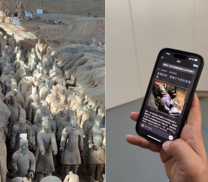 在博物馆内,还有不少导游和游客像小席这样利用手中的AI工具辅助游览,他们有的通过AI识别来获取更多文物知识,有的通过3D概览来探索更多文物细节。这些轻量化的应用与尝试,正在让兵马俑的讲解从“文物介绍”转向“历史叙事”。
