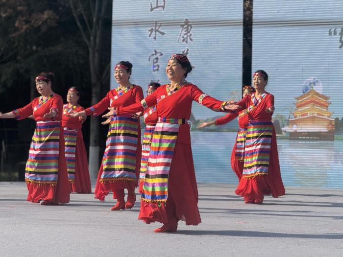 赛场上,参赛队员身着色彩鲜明的特色服饰翩翩起舞——既有锅庄舞的豪迈舒展,又有现代广场舞的活力灵动,选手们精神饱满、动作整齐划一,灵动的舞姿与真挚的热情感染着现场每一位观众,掌声、欢呼声此起彼伏,气氛热烈非凡。
