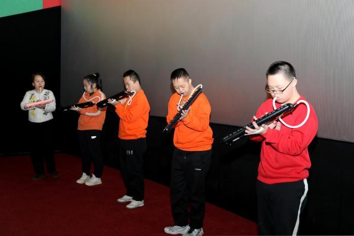 在观影前的活动上,朱培艳陪伴4名特殊儿童进行了口风琴表演,在对《我的中国心》《每当我走过老师窗前》两首曲目的演绎中,特殊儿童们认真、努力、积极向上的模样感染了在场所有人,赢得全场热烈掌声。随后,志愿者代表进行了《微光亦暖,向阳而行》诗朗诵,以真挚情感讲述暖心故事,诠释了“奉献、友爱、互助、进步”的志愿精神。