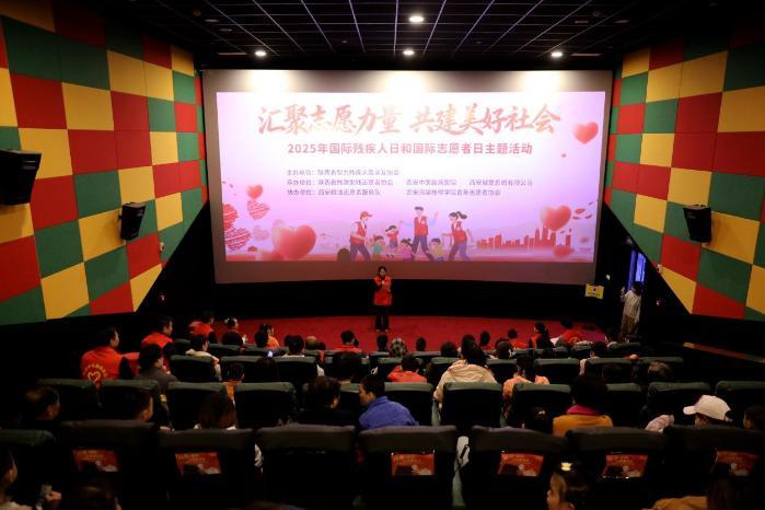 当日,由陕西省智力残疾及亲友协会主办,陕西省助残志愿者协会、西安中医脑病医院、西安城堡影城有限公司承办的“汇聚志愿力量共建美好社会”主题观影活动在影院举行,来自西安的40组特殊儿童家庭齐聚光影之下,共赴这场爱与温暖的约会。