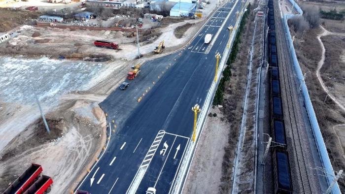 “目前路基工程已完成70%,桥梁桩基工程完成60%。预计通车后,城区到机场的通行时间缩至15分钟,将进一步打通府谷的‘空中门户’,为对外联通、产业发展架起便捷高效的交通桥梁。”S550府谷府州机场连接线项目现场施工负责人薛宝龙说。