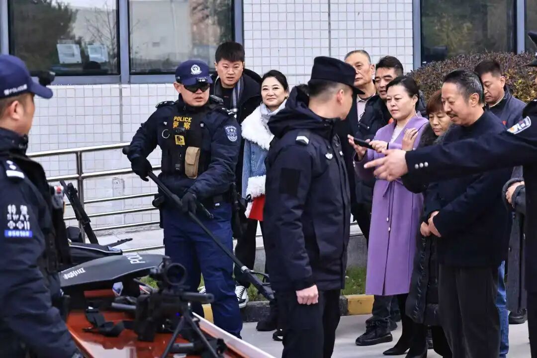 受邀代表们首先观摩了分局反特大队应急快反小分队进行的实战化快反演练,演练紧贴日常勤务与应急处突实际,充分展示了队伍闻令即动、高效协同的作战能力。随后,代表们参观了包括新型单警装备、无人机反制设备及装甲车在内的多种警用装备,分局民警进行了详细讲解与操作演示,代表们饶有兴致地进行了沉浸式体验,对公安科技化、专业化建设成果有了直观深入的了解。