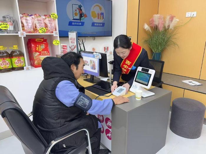“姑娘,你们这儿的服务真不错!”李大爷笑着说。业务办理中,考虑到老年人冬季易生病,刘倩贴心使用便民箱中的血压计为老人测量血压。