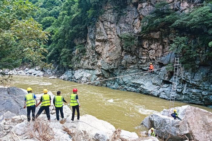 今年夏季暴雨,黑峪山路被泥石流冲毁,为了检修基站,维护人员载着设备,一路清淤排障,搭着梯子爬山过河,5个多小时才抵达故障站点,恢复了网络信号。