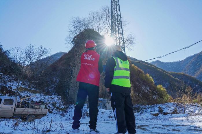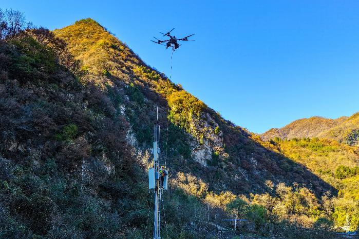 当然也有一些巧办法,在太平峪景区附近的山头,几组200多斤的大件运输困难,人工作业环境很差,但山顶树枝遮挡少,施工组用无人机空中吊装,地面5个人定位、牵引,只用了4小时就成功将设备安装就位,比人工运输安装节省了2天多时间。