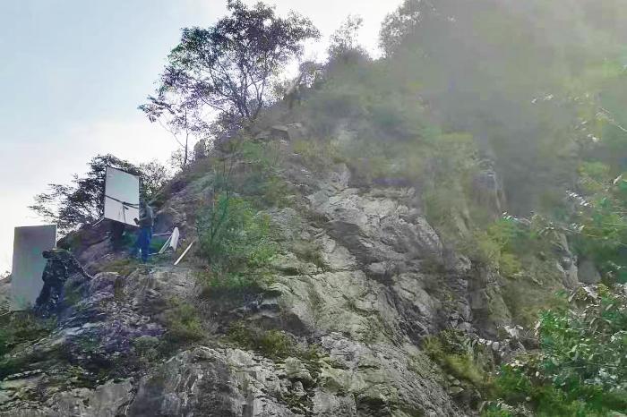 前期方案充分考虑到施工可行性,但想把“施工图”落地在秦岭海拔1000多米的石梁和崖顶上,困难依旧不少。参加此次项目的成延鹏回忆说:“搬运物料时车进不去的地方,人拉肩扛还能解决,但有些山坡很陡,人上去都要手脚并用,更别说设备了。”为了确保项目进度,大家想尽了“土办法”,也用了不少“黑科技”,只为了一个目的:高标准如期交付。