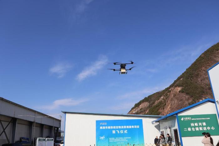 指令一下,一架货运无人机腾空而起,飞向300米的高空。7分钟后,无人机将包裹成功送达5.3公里外的指定卸货点——这是近日在商洛市邮政低空物流普遍服务项目首飞仪式现场发生的一幕。