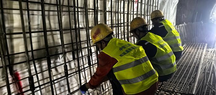 图为钢筋绑扎施工现场。