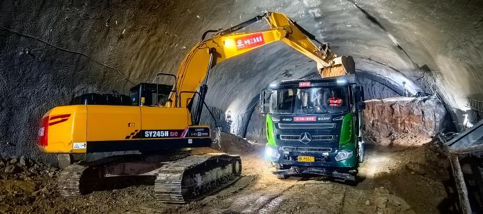 图为隧道出渣现场。