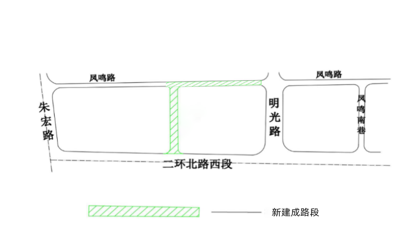 明光路西侧规划路:这是一条南北向支路,南起北二环,北至凤鸣路,全长约203米,它将成为朱宏路与明光路之间又一条重要的分流通道。