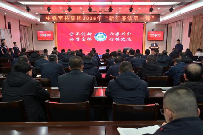 1月4日,是2026年开年首个工作日,中铁宝桥集团第四会议室内党旗鲜艳、誓言铿锵,全体党员用一场庄重的重温入党誓词仪式,拉开了第15个“新年廉洁第一课”的帷幕。在“十五五”规划开局起步之时,这场以“初心如磐铸廉魂奋楫扬帆启新程”为主线的廉洁教育活动,通过六大特色环节,为公司全体党员干部职工送上了开年“廉洁大礼包”。