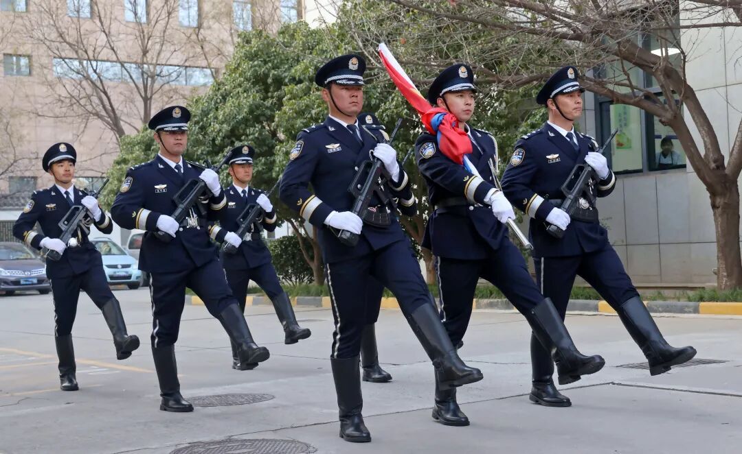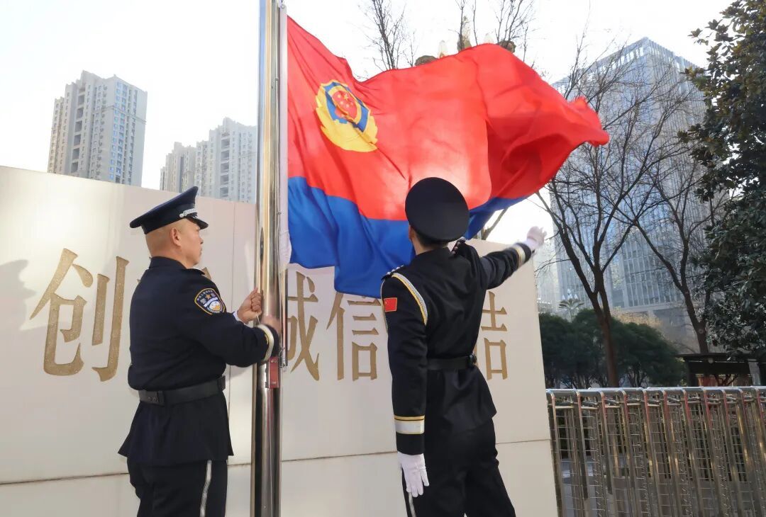 1月10日上午9时,仪式在激昂的《中国人民警察警歌》中拉开帷幕。红蓝相映、彰显忠诚的中国人民警察警旗,由精神抖擞的仪仗队员护卫,迈着坚定步伐正步行进至旗杆前。伴随着振奋人心的旋律,警旗冉冉升起,迎风飘扬。全体人员昂首肃立,向警旗致以崇高敬礼,目光中饱含着对这份职业的尊崇与自豪。