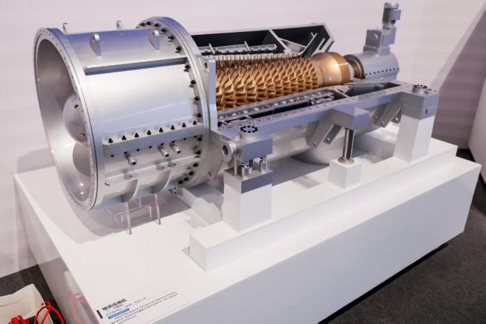 一台精密的银色机械模型吸引了众多专业观众的目光。这是陕鼓研制的AV140轴流压缩机模型。作为我国自主研制的目前全球流量最大的轴流压缩机组,代表了该领域国际领先技术水平。该设备转子直径达1.4米,整机总重400吨,最大风量可达20000立方米/分钟,转换效率超过92%。