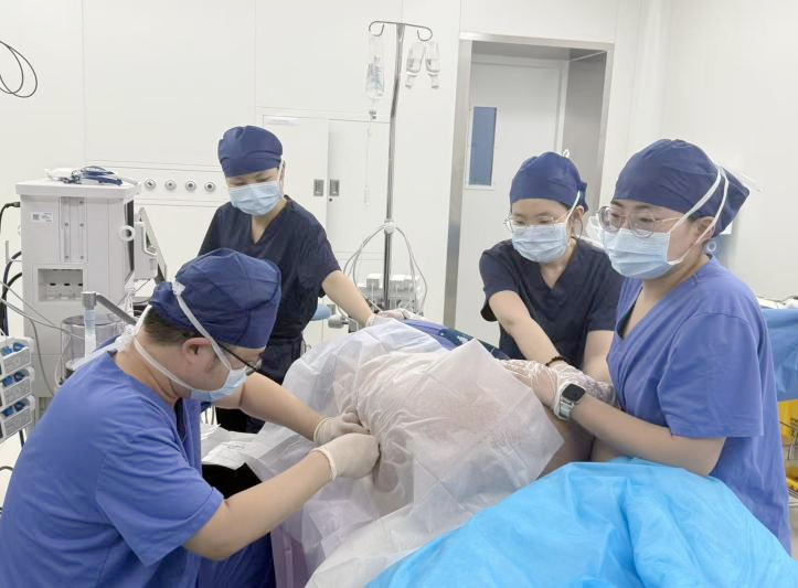 产妇孙女士(化名)37岁,身高152cm,体重94kg,BMI高达40.69kg/m2,合并症多,随时发生子痫抽搐、心脑血管意外、产后出血、血栓栓塞性疾病、褥疮、伤口愈合不良、新生儿并发症的可能性极大,给手术、麻醉及术后管理带来了巨大的挑战。在胡静主任的统一部署下,王聪副主任医师、麻焕玉住院医师、李慧住院医师组成的核心团队,联合麻醉科、心内科、内分泌科及产科护理团队全程精细照护,共同完成此次高风险、高难度的手术与管理任务。