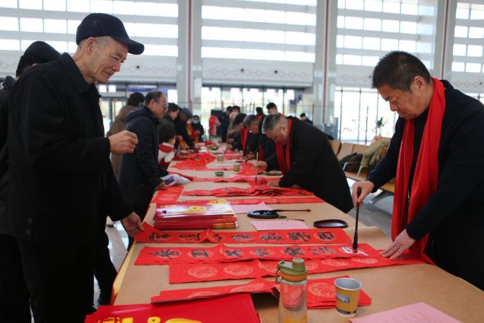 图为书法家们现场为旅客书写春联。赵宏亮 摄