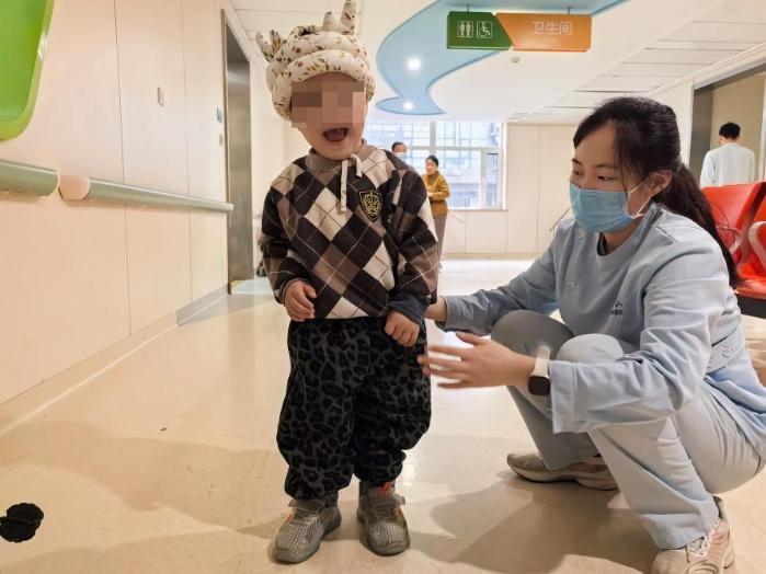 在该院,还有不少像欣欣一样来自宁夏及周边地区的发育迟滞患儿。两岁多的乐乐(化名)2025年7月入院时无法正常爬行,经二十多天治疗后实现爬行,如今已能在大人保护下缓慢独立行走。