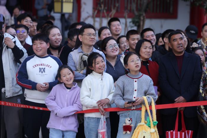 春节期间,西安千古情景区推出系列新春活动,将年味拉满。天灯祈福仪式,万千孔明灯升腾而起,全家人提笔书写心愿,共盼团圆、同寄相思。盛世鱼灯巡游穿行街巷,流光溢彩间呈现“千鳞载福入万家”的喜庆景象。来自西安本地的市民刘女士表示:“现在过年就想找这种有年味的地方,带孩子看看演出,还能偶遇李白对诗、狄仁杰探案,在皮影戏和华阴老腔中感受原汁原味的传统文化,全家人都特别开心。”(张恩豪)