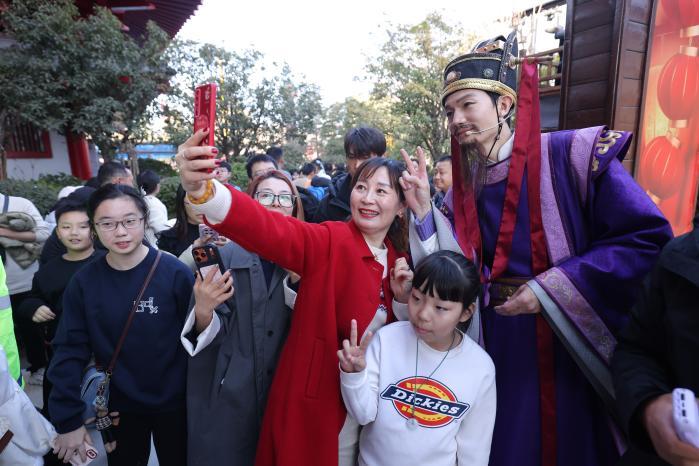 图为“房玄龄”与游客互动。