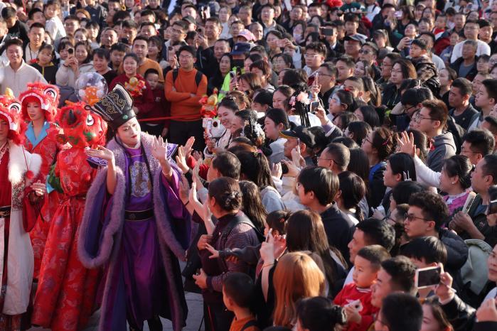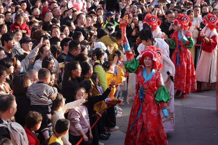 图为西安景区热闹过春节。