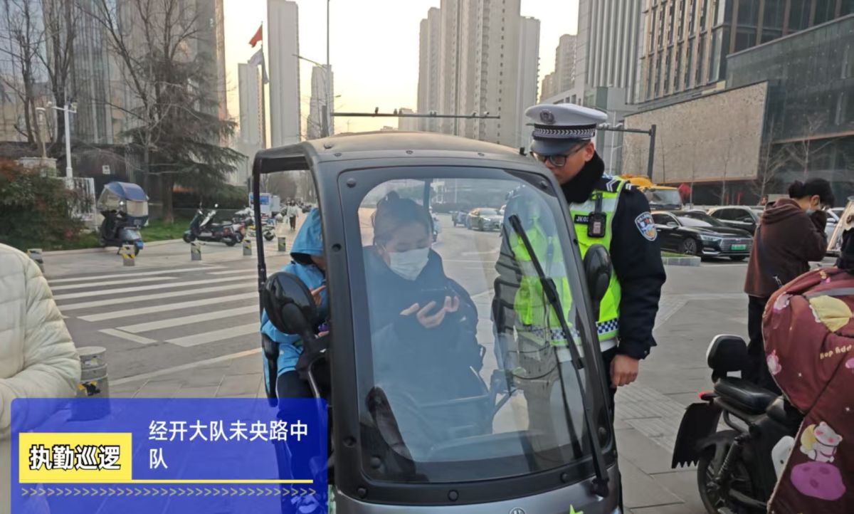 中队以路面管控为核心,强化警车、铁骑高频次巡查,实现重点路段、时段全覆盖,快速处置轻微交通事故,最大限度减少通行影响。同时,在高峰时段加大整治力度,依法严查违法停放、“以车代店”占道经营等行为,有效净化道路通行环境。为了应对三轮摩托车上路行驶明显增多的新交通动态,中队专门在未央路与凤城七路交叉口核心商圈,设置交通文明示范岗,向三轮摩托车驾驶人进行驾驶证、车牌办理的指引,以及如何守法行驶、停放等相关交通安全知识的宣教。