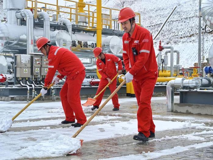 麒麟采气作业区第一时间启动雪天保供应急预案,全体干部员工迅速奔赴岗位一线,严格执行巡检流程,精准调控阀门参数,细致排查设备防冻及管线运行状况;同时及时清扫生产区域积雪,消除地面湿滑隐患,保障作业通道安全畅通,全力确保天然气生产平稳有序。
