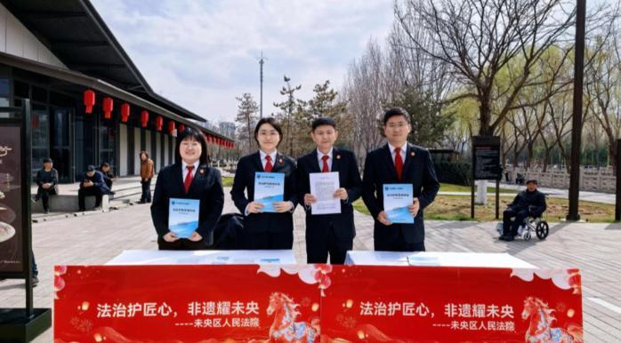 为培育全民非遗保护理念,以法治力量推动非遗活态传承,近日,未央法院速裁审判庭庭长方圆带领知识产权团队,走进汉长安城章城门广场,在市文旅局、区政府、汉长安城国家大遗址保护特区管委会主办的非遗民俗文化展演现场,开展“法治护匠心,非遗耀未央”主题普法宣传活动。