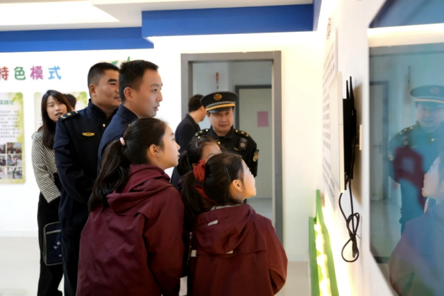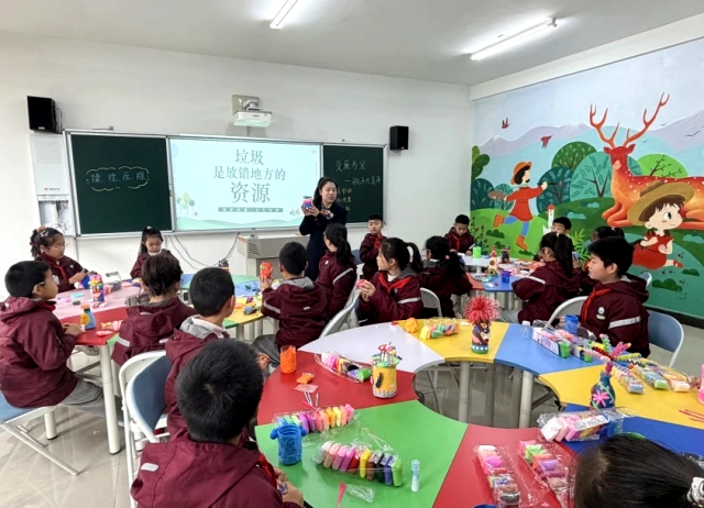 一行人与孩子们亲切互动,通过现场问答的方式巩固垃圾分类知识、传递绿色理念,直观感受到学校在垃圾分类教育方面的实践与创新。随后,学校负责人介绍了2026年垃圾分类工作计划,并围绕宣教基地建设、分类场馆育人实践、环保理念全域拓展、家校社协同宣教等内容进行了沉浸式交流。