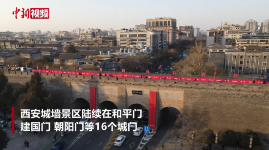 【新春纪事】西安明城墙挂巨幅大红春联 新春氛围浓
